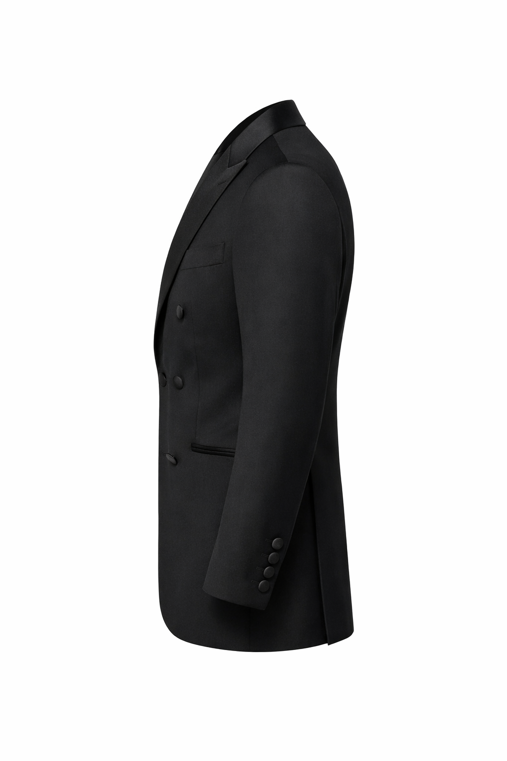 Designed as a full bespoke made-to-measure tuxedo suit, every element is tailored precisely to your measurements for an impeccable fit, flawless drape, and unparalleled comfort. The jacket boasts structured shoulders, besom pockets with satin trim, covered buttons, and full lining, while the trousers offer a modern slim or classic fit with adjustable waistband options. Delivered directly to your door in just 10 to 14 days, this rapid bespoke service combines old-world craftsmanship with contemporary efficiency—no lengthy wait times required.Ideal for black-tie events, weddings, galas, proms, formal dinners, awards ceremonies, or any occasion demanding black tie attire, pair it with a crisp white tuxedo shirt, black bow tie, patent leather shoes, and cufflinks for effortless James Bond-level polish.Key features: